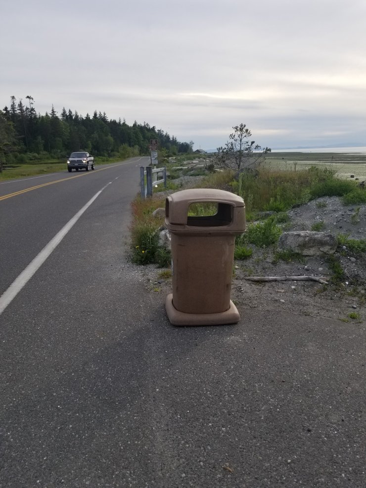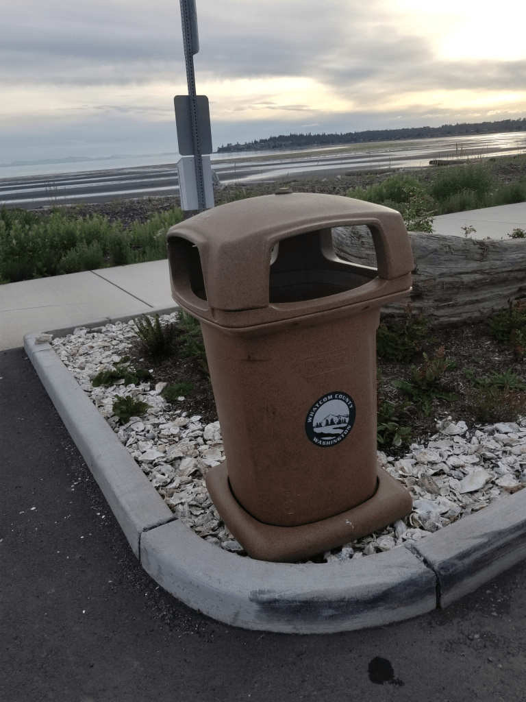 Examples of garbage cans along Birch Bay Drive off the Bike and Pedestrian Laine.