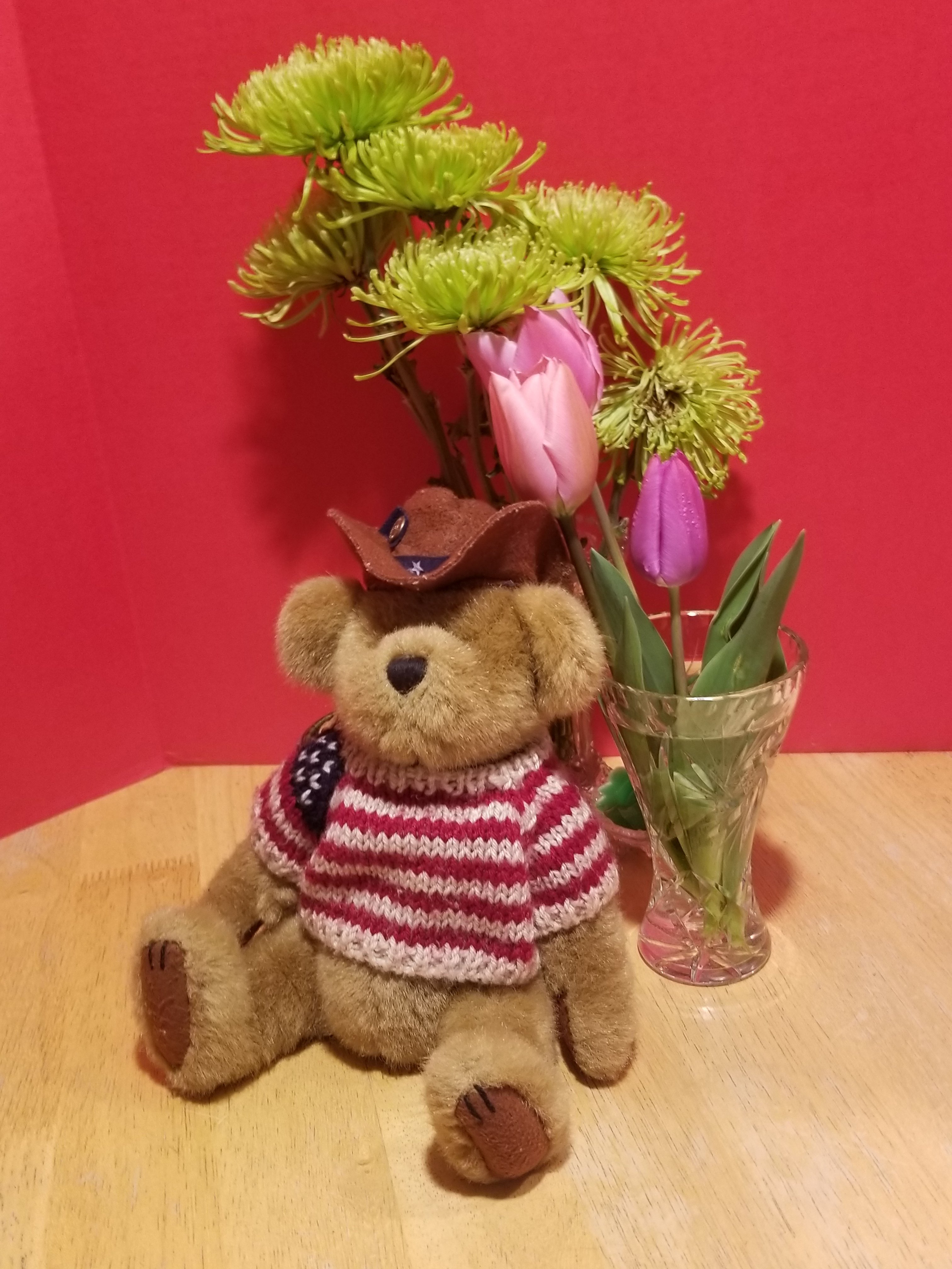This is what you need to know about Teddy. Teddy was given to me by a Canadian lady whose children are grown up now. She wanted another child to have Teddy. Her family had visited Birch Bay and Blaine frequently.